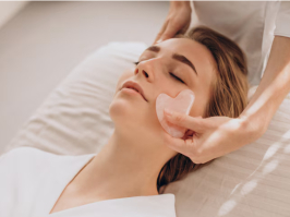 Soin profond du visage au Gua Sha et pierres de quartz rose. Détendre, sculpter, lisser et illuminer le visage telles sont les actions de ce soin chinois.
